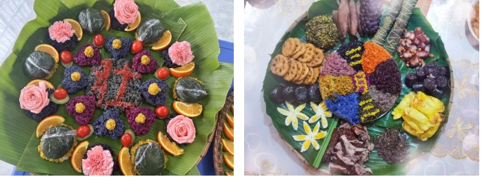 大家用簸箕拼盤將層次分明、色彩斑斕的各項(xiàng)珍饈有規(guī)律的擺放到簸箕中,從五谷雜糧的馥郁到山珍海味的鮮美,再到田園時蔬的清香,這些菜肴不僅口感獨(dú)特,而且蘊(yùn)含著豐富的民族文化內(nèi)涵,體現(xiàn)了人們對美好生活的向往和追求。圖為集團(tuán)公司職工前往社區(qū)參加活動拍攝的特色美食照片。