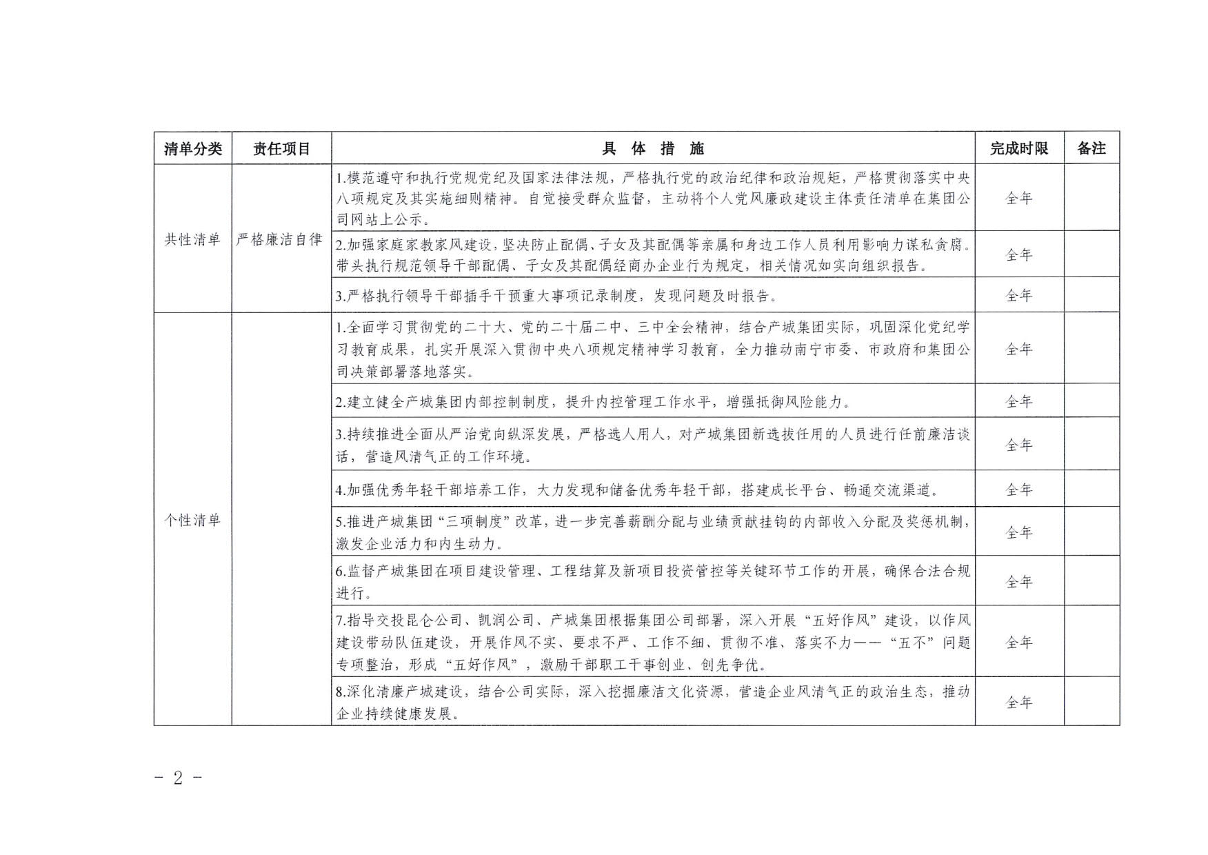 南寧交投集團領(lǐng)導(dǎo)班子其他成員2025年度黨風廉政建設(shè)“一崗雙責”清單(七)
