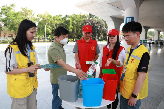 5月13日,南寧礦業(yè)集團(tuán)聯(lián)合康城汽車(chē)集團(tuán)在南寧東站開(kāi)展“垃圾分類(lèi)齊參與 四色分類(lèi)記心間”志愿服務(wù)活動(dòng),將綠色文明課堂搬進(jìn)交通樞紐,通過(guò)沉浸式互動(dòng)體驗(yàn)讓垃圾分類(lèi)知識(shí)“活起來(lái)”。